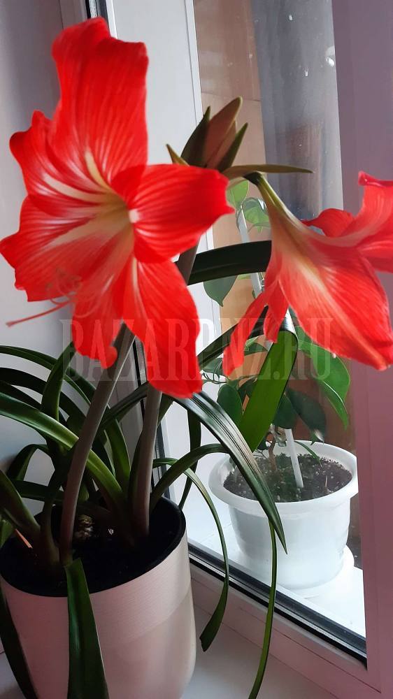 Цветок амариллис красного цвета. Высажен в кашпо, пересадка не требуется. Сейчас выпустил цветонос. Зацветет в течении недели. Летом можно высадить на улицу, где он также зацветет и нарастит луковицу. Цена 450 рублей (вместе с кашпо). Тел +79023408299.
