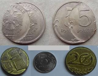 5 руб двойной удар, 10 руб бим с выкусами и др. браки на монетах