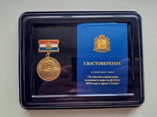 Медаль "За участие в проведении чемпионата мира по футболу 2018 в г Самара"